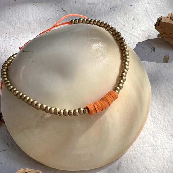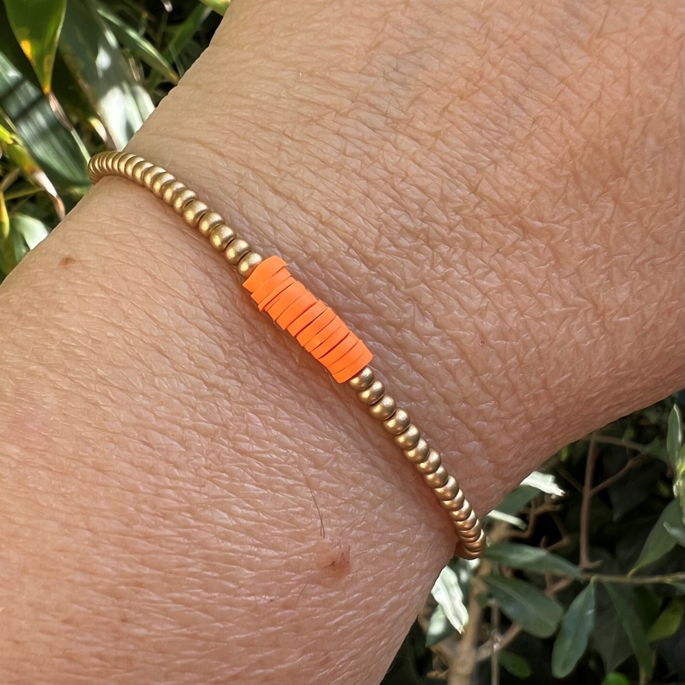 Bracelet perles doré mat et orange